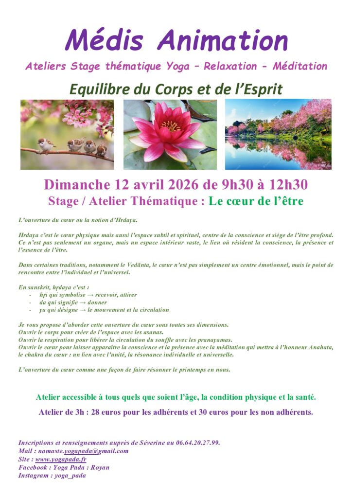 Dimanche 12 avril de 9h30 à 12h30 : Stage ouverture du coeur
