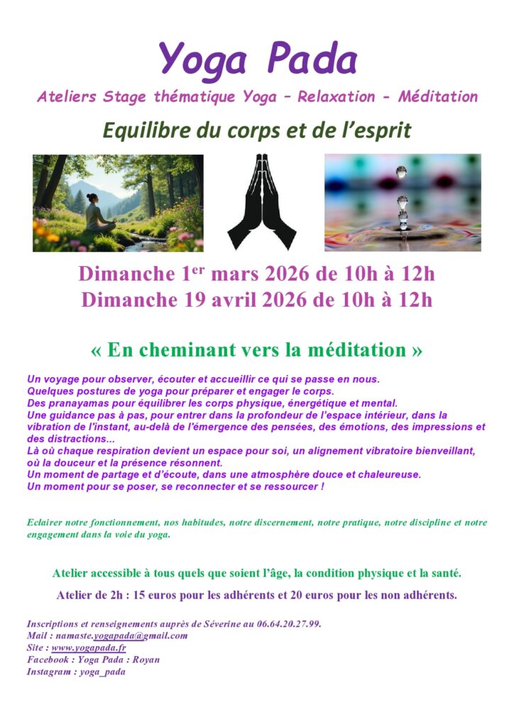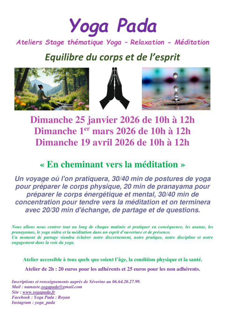 Voici tous les Rendez-vous du week-end de janvier à juin 2026, pratique méditative, relaxation, stages et ateliers.